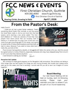 Join us online Sunday at 10:25 a.m. for our LIVESTREAM service! Click Below to join us or find us on Facebook at First Christian Church of Guthrie!