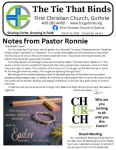Join us online Sunday at 10:25 a.m. for our LIVESTREAM service! Click Below to join us or find us on Facebook at First Christian Church of Guthrie!
